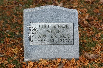 | cto | Weber, Cletus P. | NC-08-11 | 26-Apr-1915 | 21 Feb 2007 | Bernice Hoffman Denzin | 10 Jun 1967 | Frank & Elizabeth (Elfert) Weber | |