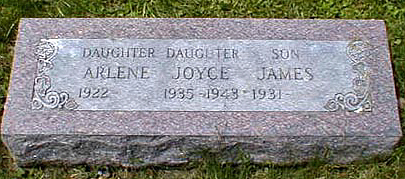 | n | Weber, Josephine Louise | Jan-1921 | 16-Mar-1922 | d. rcd 10-119 says buried here; 14 mo. old | Frank & Elizabeth (Elfert) Weber | |||