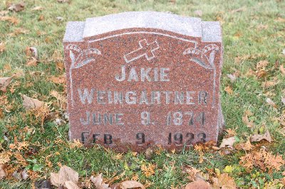 | ctnb | Weingartner, Jakie (Jacob) | OB-13-12 | 9-Jun-1874 | 9-Feb-1923 | d. rcd 10-292 | Single | John & Augusta Weingartner | |
