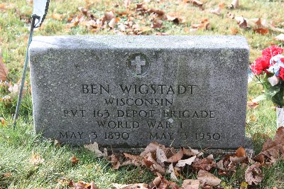 | ctob | Wigstadt, Ben | OB-20-20 | 3-May-1890 | 3-May-1950 | WWI-WI Pvt 163 Depot Brigade; d. rcd 23-408 |