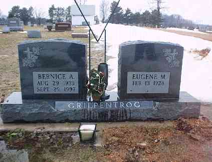 | fx | Griepentrog, Bernice A. | 29-Aug-1933 | 29-Sep-1997 | d. pneumonia | Eugene M. Griepentrog | 11-Sep-1948 | Frank & Leona (Singstock) Ertl |