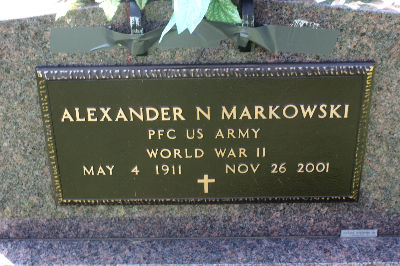 | tfo | Markowski, Alexander Norbert; #2 | 4 May 1911 | 26 Nov 2001 | Anne C. Przybylski | 6 Jun 1953 | Joseph & Angeline (Michalec) Markowski | ||