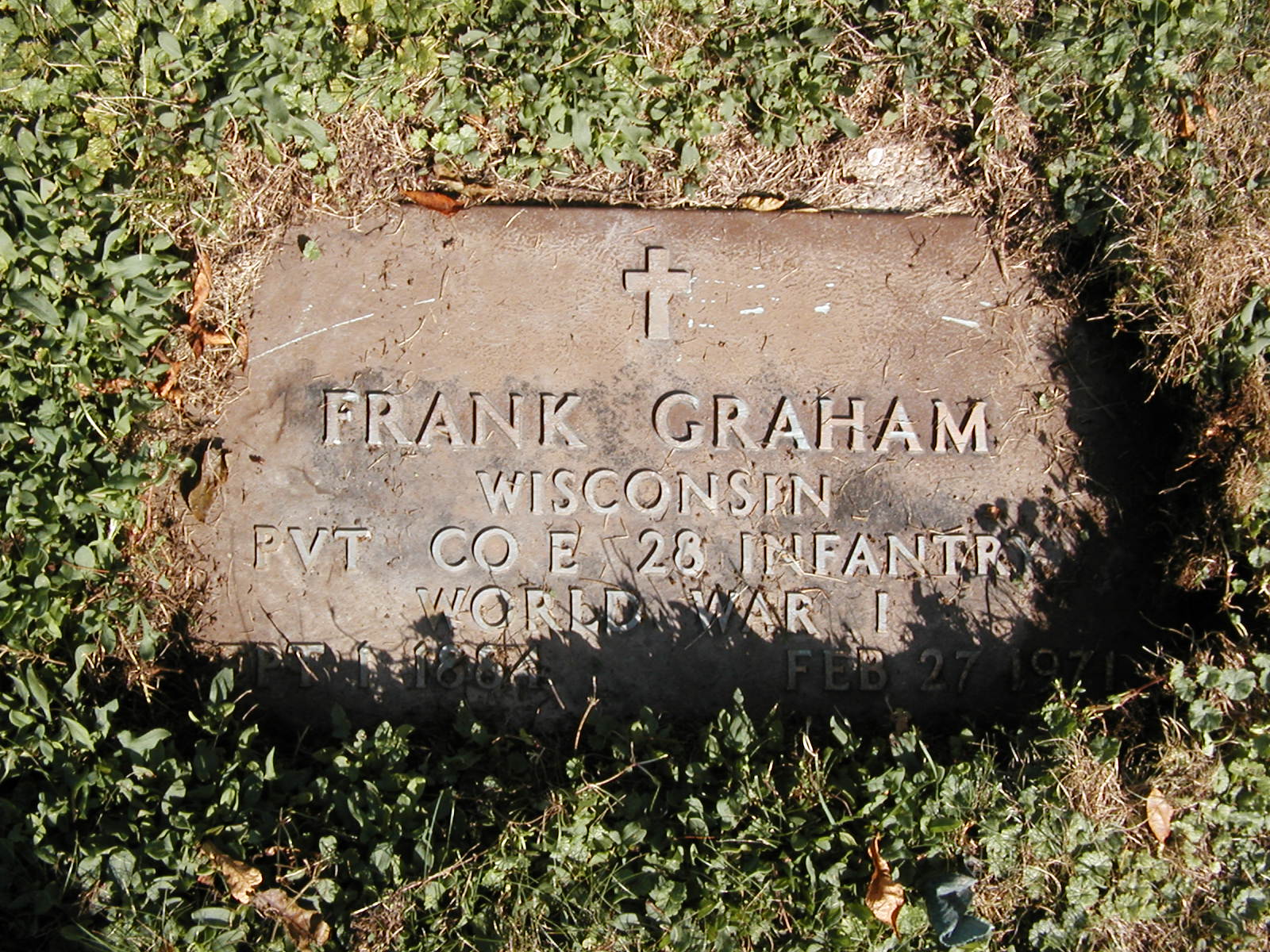 | tno | Graham, Frank M., #2 | 1 Sep 1884 | 27 Feb 1971 | WWI-Pvt Co E. 28 Infantry | Dorthea H. Kuntz | 23 Feb 1922 | David & Mildred M. (Alexander) Graham |