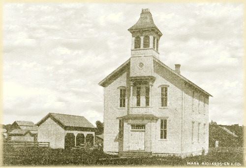 This building is located across the Clark county line in Marathon county, but the district in which it is located is a joint district, including portions of the towns of Colby and Hull. It is built for two departments, but the large number of pupils attending the school has made it necessary to form another department, which occupies a portion of the high school building on the Clark County side. The teachers for the current year are Fannie Burton, Laura Gotchy and Carrie Vandercook. The school board are Andrew Flaig, Sam Shafer and R. B. Salter. |