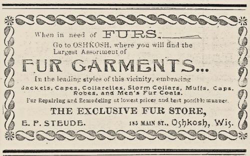 "The Exclusive Fur Store" of Oshkosh, Wisconsin placed the advertisement above in the February 2, 1900.