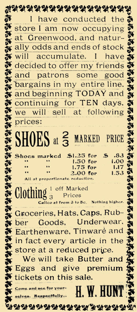 The above ad appeared in the Greenwood Gleaner, 1900.
