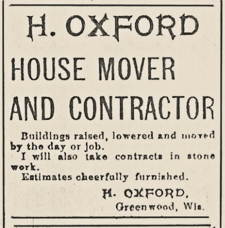 Henry Oxford has sold out his dray business first to Hastings Baird who the next day sold it to Cha. Kippenhan. Mr. Oxford expects to spend some time in other parts and will probably leave today. Greenwood Gleaner 3-9-1900.