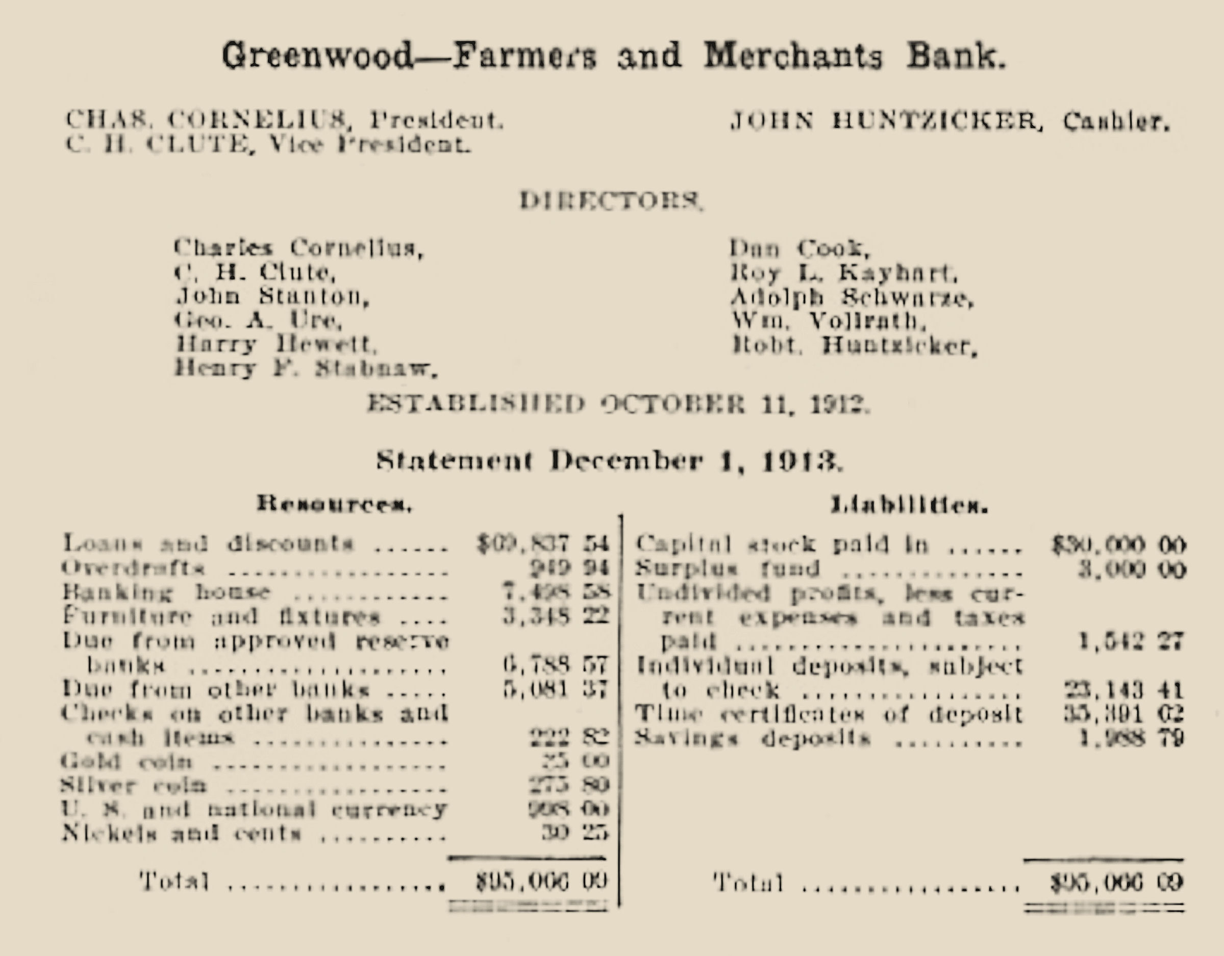 History: Greenwood, Wis., Farmers & Merchants Bank