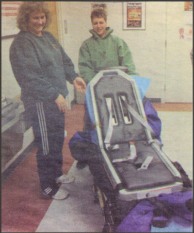 The safeguard transport is similar to a car seat and can hold a child weighing between 22 and 100 pounds, said Backus, who added the safeguard transport is used to transport children to the hospital.