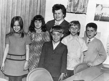Janice Ystad, Pamela Kind, ?? Culton, Larry Nielsen, Dennis Kirn, and Mrs Alice Verhulst in the back