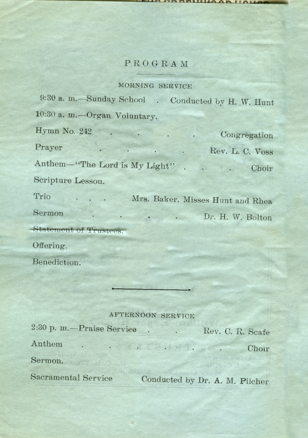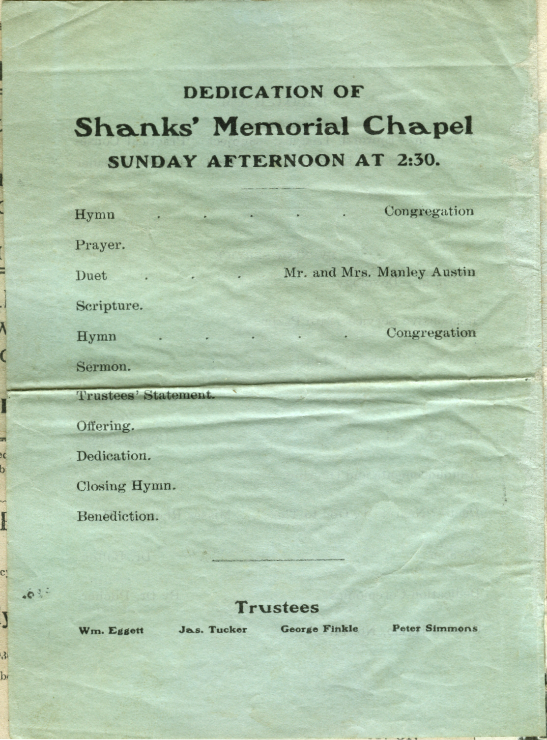 Surnames: Andrews, Austin, Bolton, Bowen, Brown, Hendren, Hunt, Hunt, Kloster, Miller, Pilcher, Scafe, Shanks, Voss