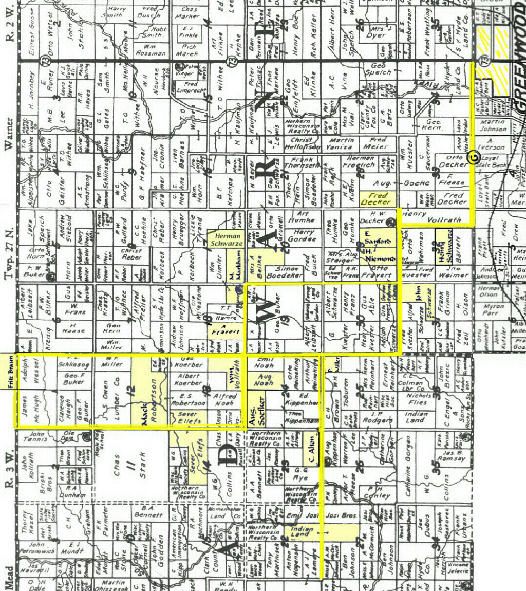 Number 3 gows northeast, covers that 6 miles north and 8 miles east. We got a new paved road finished this year thru Greenwood all the way from Withee to Neillsville, give us a fine outlet. No more wallowing in mud as we have had to do many yers.