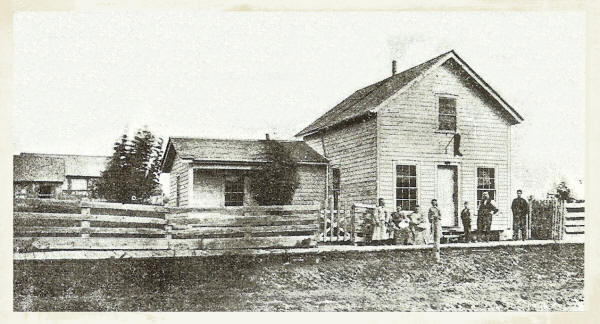 Mr. Carpenter cleared five acres of ground and in the Spring of 1858 built a small shanty of slabs from the Eaton sawmill on the site later occupied by the Oelig residence. When completed, he brought his family, consisting of his wife and two children, to share his humble, but happy home and fortune.