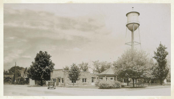 What a comparison it is to look at the picture above and notice the high board fence with the old fashioned swing gates, an unkempt, rough and stony roadway for Main Street and a narrow boardwalk, which at that time, was to be seen in a very few place only, to the present day, when our sidewalks are good and wide, the most of them either of cement or flagstone, our wide, graded Main Street with it curbs and sluice ways, beautiful shade trees and well kept lawns.