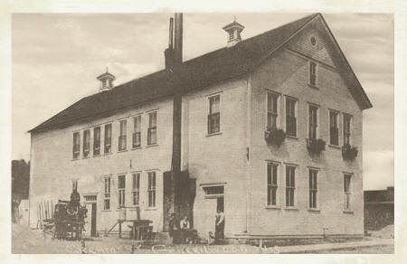 The above building was erected by N.C. Foster in the summer of 1901, for Carl Grashorn, who operated the creamery on a small scale until 1904, when he sold an interest in the business to A. F. Falk. In 1906 this partnership dissolved, Mr. Grashorn again taking full possession, or until Sept. 1, 1908, when the Eau Claire Creamery Co. leased the plant from Mr. Grashorn for a period of one year, and this season proved to be so prosperous and the outlook for more extensive business so promising, that on June 1, 1909, the company purchased the plant of Mr. Grashorn, and during the past summer have done an enormous business.