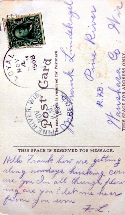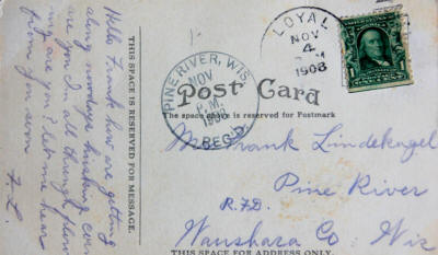 From: F. L., Loyal, Wis. 4 Nov 1908 |