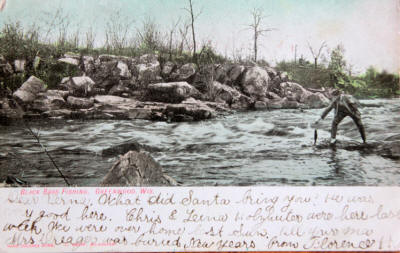 Fishing on the Black River, Greenwood, Wisconsin Dear Verna, What did Santa bring you? He was very good her. Chris and Leina Holzhuter were here last week. We were over home last Sun. Tell your Ma Mrs. Dreager was buried New Years. from Florence H.
