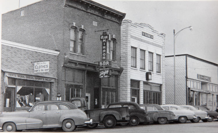 Blue Mirror Bar, Main Street, Greenwood, Wisconsin Through the years, this business was owned or operated by Robert & Donna Hinker, Gary & Delores Drews, Bob & Donna Diedrich, Pete Bogdonovich, Arthur J. Ampe, Joe Verschay, Edward M. Bogdonovich, Bea Noyes Clayton (Grocery-wife of Jessie and daughter of John E. and Harriet Edwards Noyes), St. Lucy's Thrift Shop, Aldon J. Allard, John Drummond and Chalmer Perkins (Barber). *When Aldon Allard died in 1940, Chal Perkins sung "Rock of Ages" at his funeral. |