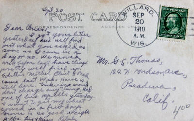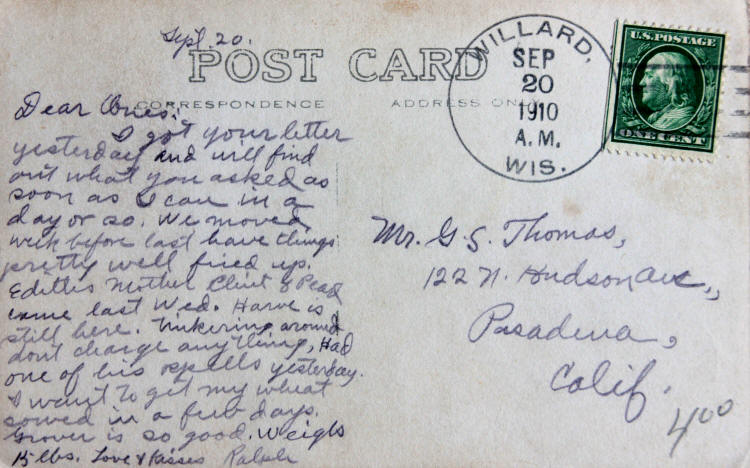 From: Ralph, Willard, Wis. 20 Sep 1910 |