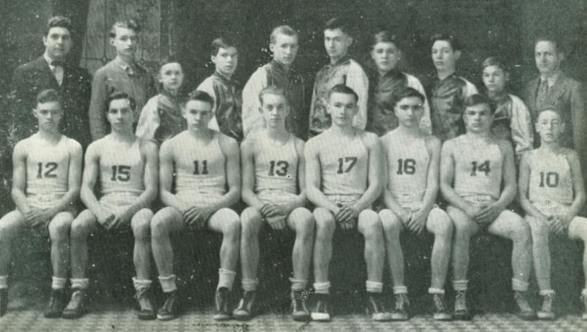 Three weeks after the football season was over the basketball season started. This being the major sport there was a fairly good-sixed squad reporting.