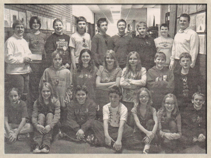 | Greenwood Elementary recently held a Penny War to help raise money for the local food pantry. The total raised was $1,321.66, which is $174.49 more than last year. The class that raised the most money was Scott Schiller’s sixth-grade. Deb Ortner, Greenwood deputy clerk (far left), accepted the check for the food pantry. Standing with the class is teacher Scott Schiller (far right). (Contributed photo) |