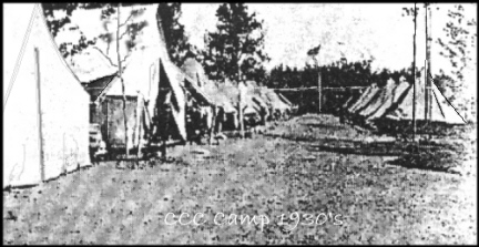 CCC Camp established during the dust bowl of the mid 1930s. Pictured above is the company street at one of the Civilian Conservation Corps camps. Later, barracks were established. |