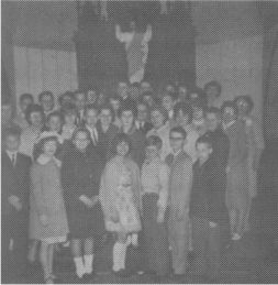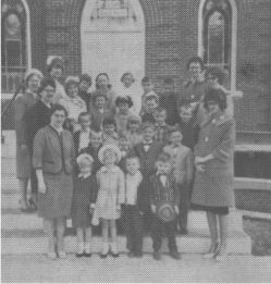 Mrs. Eugene Thiede is the teacher for the High School class which has an enrollment of six. Mrs. Helmuth Winkler and Mrs. Ralph Lautenbach, the intermediate classes with an enrollment of fourteen. Mrs. Norman Beilke, Mrs. Roy Johnson and Mrs. John Grassman are the teachers of the Junior Department. They have an enrollment of twenty. Mrs. Leonard Thiede, Miss Marlene Goebel and Miss Judy Schmidt teach the Primary children. They have an enrollment of seventeen. Mrs. Hubert Dudei and Miss Joyce Winter are the teachers for the Kindergarten Department with an enrollment of nine. Miss Gloria Hiles is an assistant in the Kindergarten Department. Mrs. Hubert Dudei takes care of the devotions in the Primary Department.