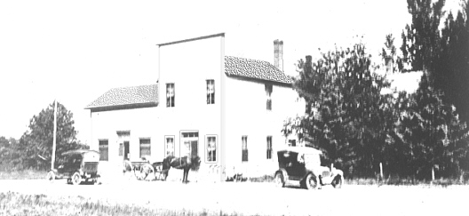 The big barn was used for salable hay, fertilizer and cement. In 1920 all these properties were sold to Otto Steinberg. The store was in operation a few years then sold to August Stelter. The main building burned to the ground about 1937. The feed store, the oldest building in town, was torn down. The lumber was used by Melvin Thomas for a crude building built on the store foundation. For a short time someone lived in it. William Sollberger bought the remaining buildings. The feed store went to various folks who needed a board here and there. So ended the glory and good times of the pioneers in these buildings.