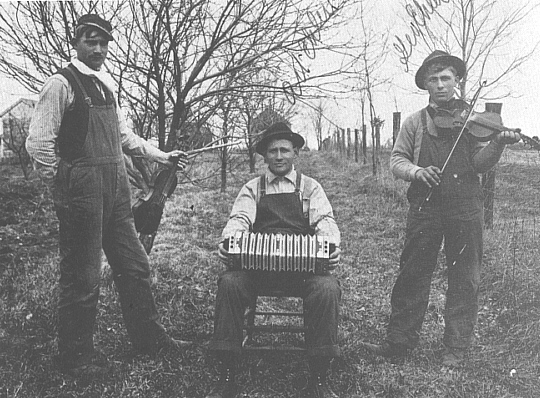The Ehlert Brothers, Art(center) and George(right), teamed up with a fiddler friend for happy times. |