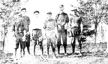 The Columbia ball clubs of the 1900’s could rival any big league team of today - at least the excitement was as great. Here are (left to right), Fritz Moser, Wark Lockman, Irving Twamley, Leat McKinney, Frank Lockman, and Paul McKinney. The catcher, Harry Babcock, is not pictured. |