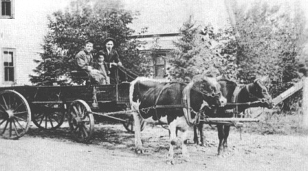 Charles and Frank Malek took their cousin for a ride with the ox team.