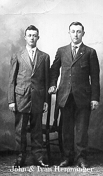 The two daughters, Maisie and Mamie both became teachers, I believe at a normal school in Ladysmith. They went they left Clark County, marrying and having families. Maisie married Martin Larson, Mamie married Ralph Amundsen. Mamie died in childbirth after her fourth child in North Dakota. Her sister Maisie's family lived close by, and she was left to care for all the children, her sisters' and her own four children. My grandmother recalls the times when Maisie would travel from North Dakota in the 1930s to Clark County. John and Maisie would travel to Door County to pick cherries, a lot of canning was going on in the Hemminger house back in Hixon, and Maisie would go home with food for the winter. Eventually Maisie moved to Washington state.