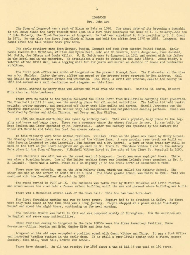 The Town of Longwood was a part of Hixon as late as 1890. The exact date of its