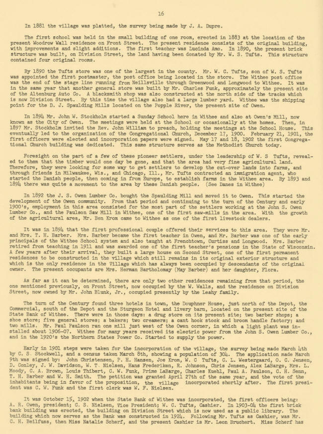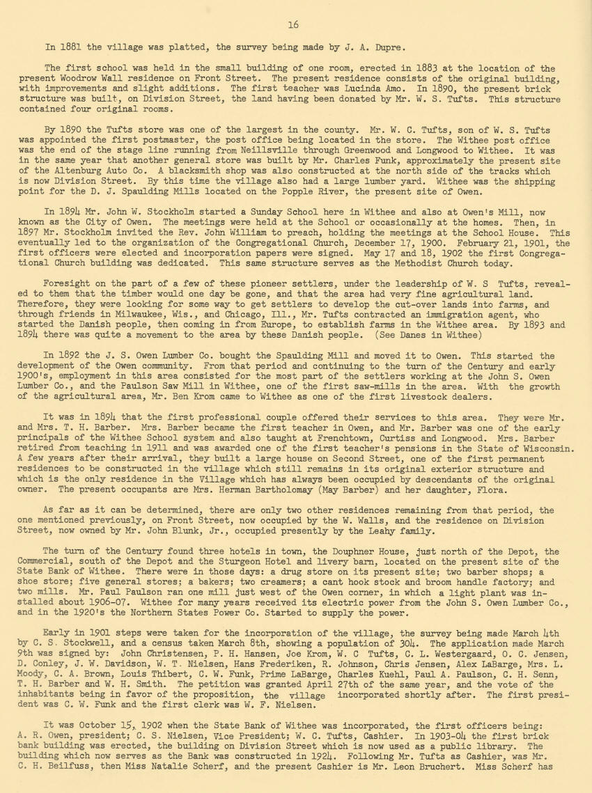 Co., and the Paulson Saw Mill in Withee, one of the first saw-mills in the area.