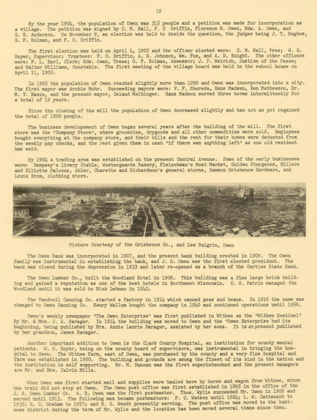 wagon from Withee, since the train did not stop at Owen. The Owen post office
