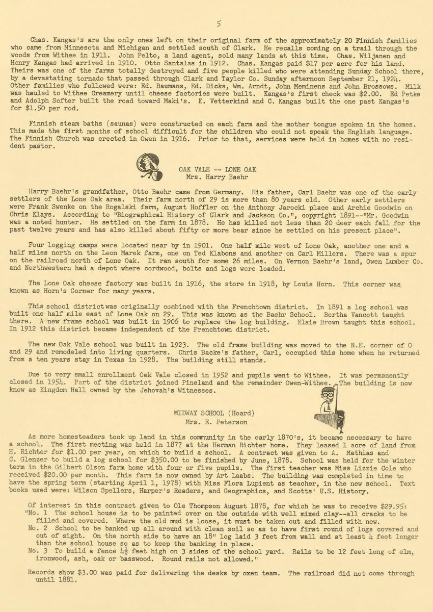Due to very small enrollment Oak Vale closed in 1952 and pupils went to Withee.