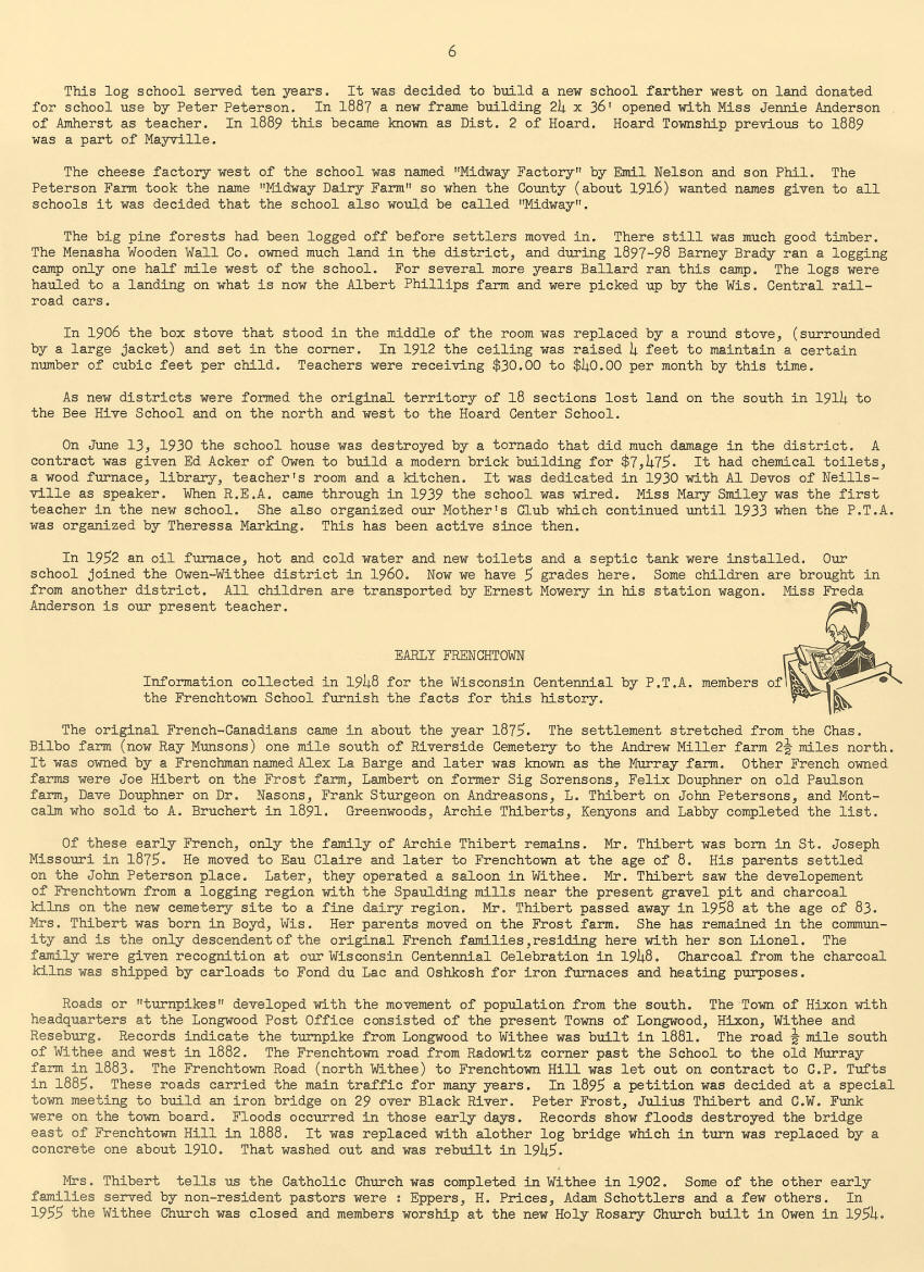 were installed. Our school joined the Owen-Withee district in 1960. Now we have