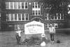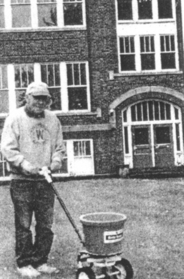 Major physical projects followed. A 10,000-gallon iron fuel tank with 1,500 gallons of fuel oil ?? it was removed from behind the older building. A board member found a blacktop company to remove the fuel. That same year, 1995, the old building got a new $15,000 roof paid for with a loan from Withee State Bank. Board members signed the otherwise unsecured note. “We entered into it with a great deal of enthusiasm,” said Roohr. The loan was repaid at $460 a month ahead of schedule in October 1998. Such attention finance is typical of the Friends; as a late May their bank account totaled $20,200. Water and electric service were restored to the 1953 gym. In 1996 the gym roof was tarred for $1,500. The previous owner, from Dorchester, had filled the school and gym with all sorts of debris and junk. Five dumpsters’ full were taken out. The Friends cleaned the parking lot. They started landscaping.