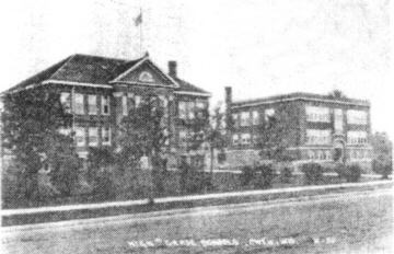 The Friends bought the school because they feared it would be demolished. Half a dozen years earlier the former Owen Grade School, built in 1907, had been torn down by the city government. “People still miss it,” June Devine Roohr told Wisconsin Preservation News. All that remains of the 1907 building are two large carved limestone column caps, one in front of the high school, and the other behind, both left by the demolition contractor.