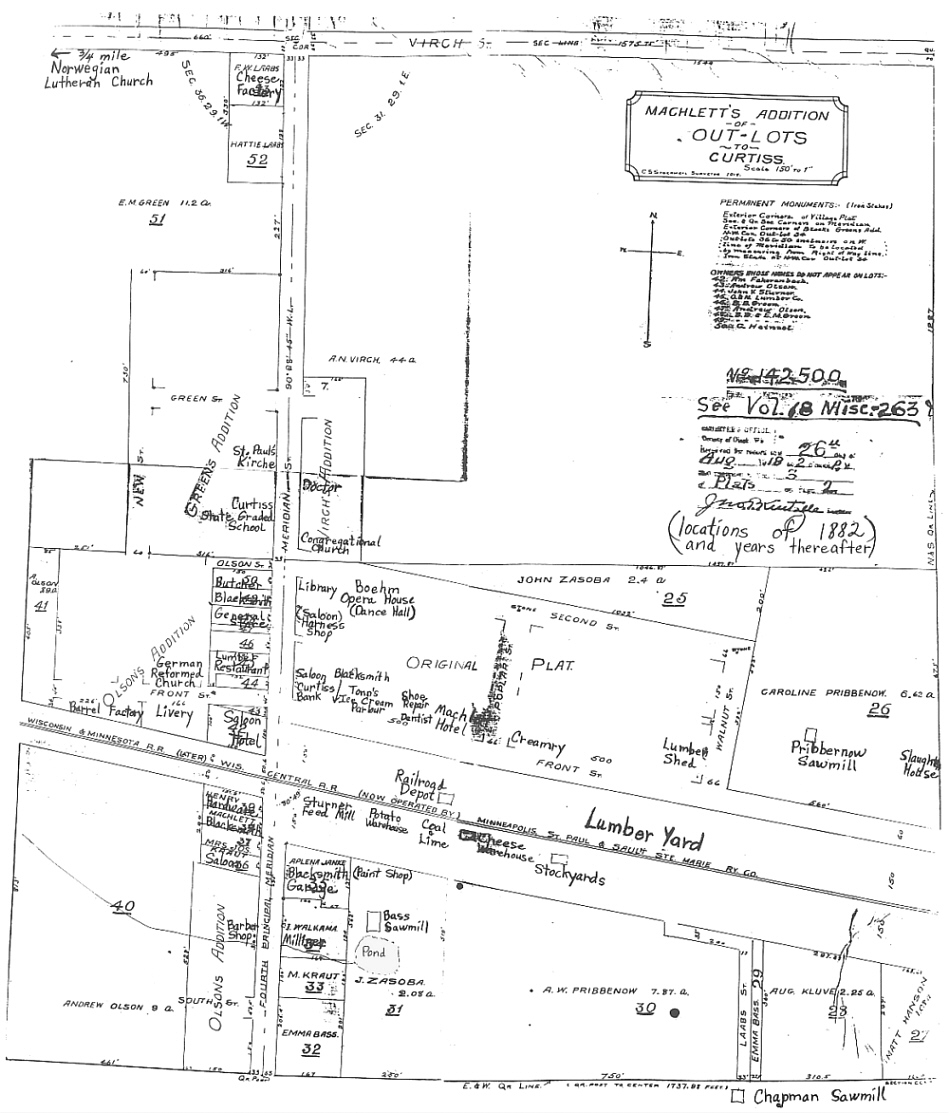 1938 Hoard Township Property Owners-- Owen Lumber Co.; J. Komsi; J. Servaty; Otto Schinke; M. Cline; E.J. Schulze; State Bank of Withee; Mary Boehm; Elmhurst School