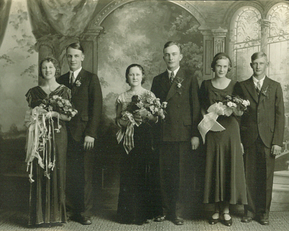 156 The Wedding of Ralph & Freida Callip (center) Left: Edyth Hardrath, Gil Weidenhoeft, Right: Mildred Weidenhoeft, Harold Hardrath |