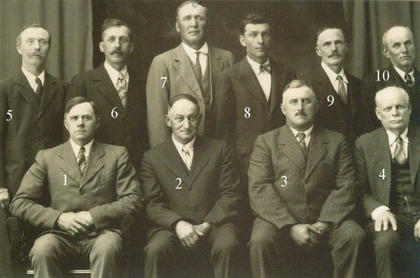 Front: 1. Herman Singstock, Elder, 2. O. Rahn, Elder, 3. J. Miller,