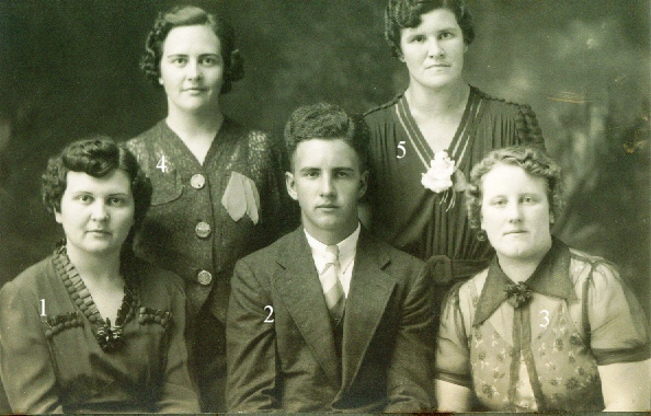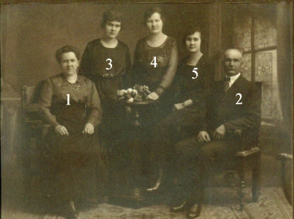 5 Children of William F. Tesmer: 1-Esther Horn, 2. Bernard Tesmer, 3. Louise Thieme, 4. Lenore Paschke, 5. Loelle Frome |