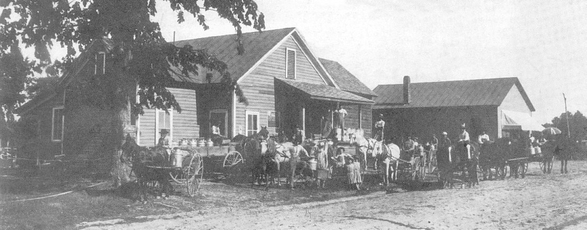 The Mike Andrusis family lived there at this time. They had two girls and one boy. We were good friends with the children and went there to play often. The building was so large that the Andrusis family used only part of it for living quarters. What fun we had roaming around the large empty rooms making believe that we were hotel keepers. I think the building later burned down, so another old land mark was gone. This is the old Longwood creamery, or factory I am not sure which. I know they had a creamery before they had a cheese factory.