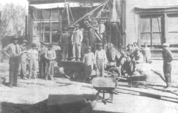 This is a picture of a crew putting in side walks in Thorp, Wisconsin |