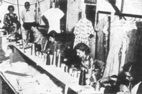 THE HUM OF MACHINES -Mr. and Mrs. Lee Snyder watch as six of their employees turn out the Billie-Jo originals that have given its reputation to Snyder's Fashion Service. At the sewing machines are, from front to back, Mary Ellen Tamm, Joan Szczech, Mrs. Stanley Urbas, Mrs. Ed Zarada and Florence Bartosiewicz. |