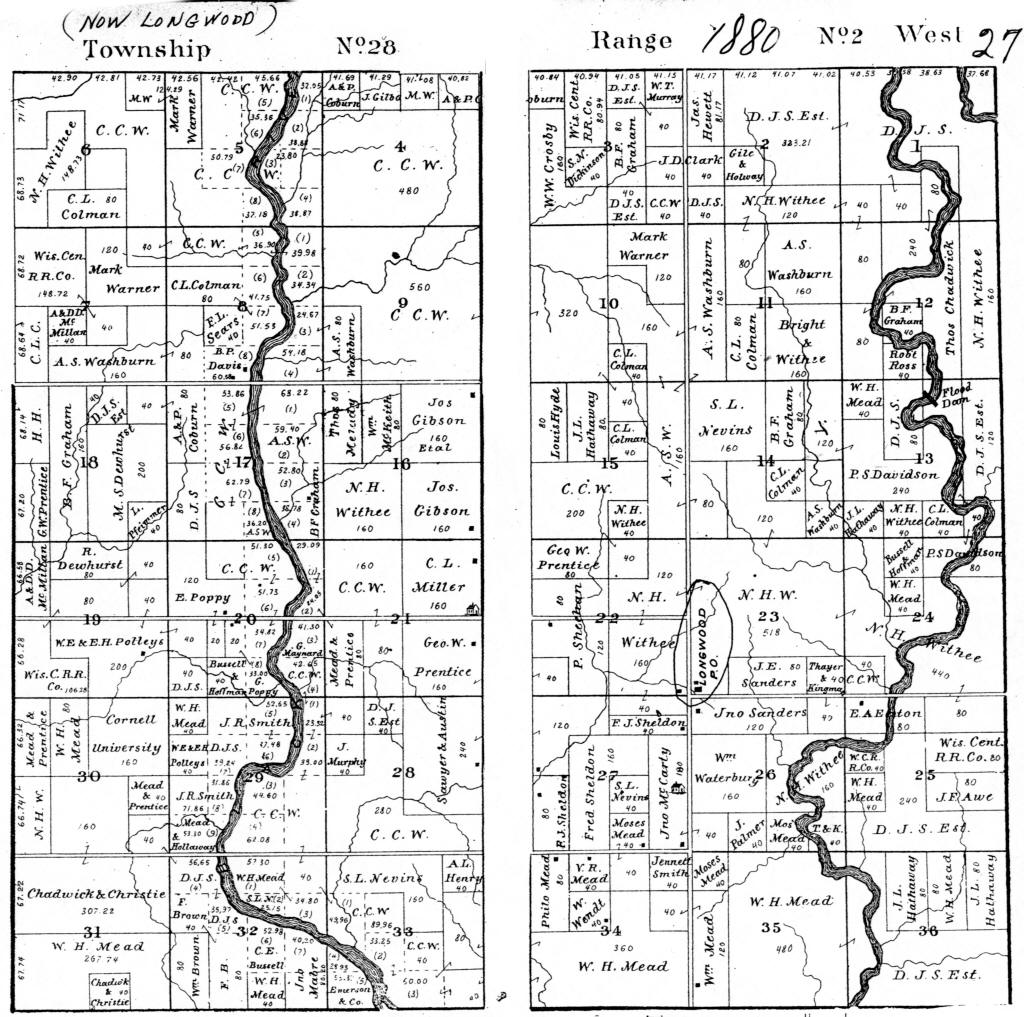 Transcription; 1880 Plat Map (In 1880, Longwood was the SE 1/4