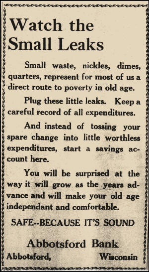 This advertisement for the Abbotsford Bank ran in the Abbotsford Tribune, 24 SEPT 1931.