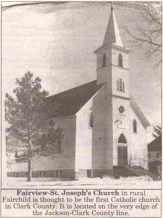 Fairview is the name of the place where the little church, the Fairview - St. Joseph's Catholic Church south of Fairchild, is located.  An old published history of Clark County claims this to be the first Catholic church in that county.  It is on the  very edge of the Jackson-Clark County line.