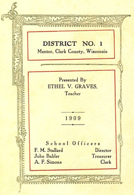 booklet for the District No.1 School in Mentor Township. It belonged to